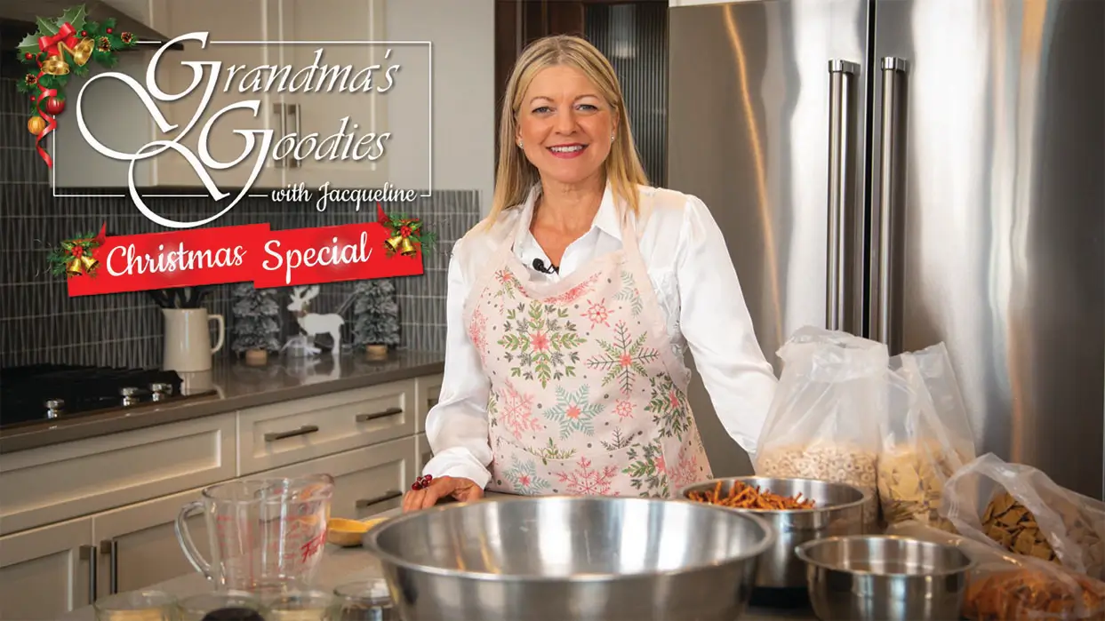 | 5:30PM Grandma’s Goodies With Jacqueline Christmas Special Episode 1 – Nuts and Bolts In this episode, Donna teaches Jacqueline to make her family’s favorite snack, “nuts and bolts.” They package them in Christmas tins and share them with the local Seniors Club during an afternoon of cards. | |||